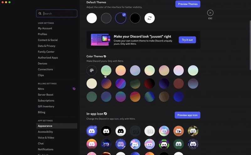Additionally, you can use a two-color theme, as well as set custom emoji in your About Me and custom message. How's that for personalization?