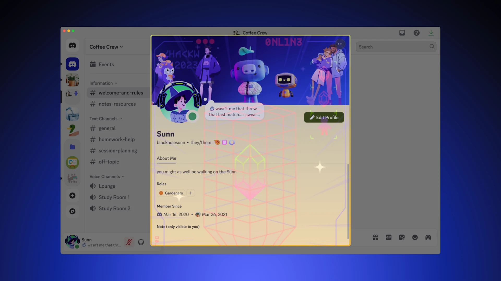 With Nitro, you can also make a unique profile per server. This can be very useful when you're hanging out with various groups, especially if it's a community devoted to a different type of game.